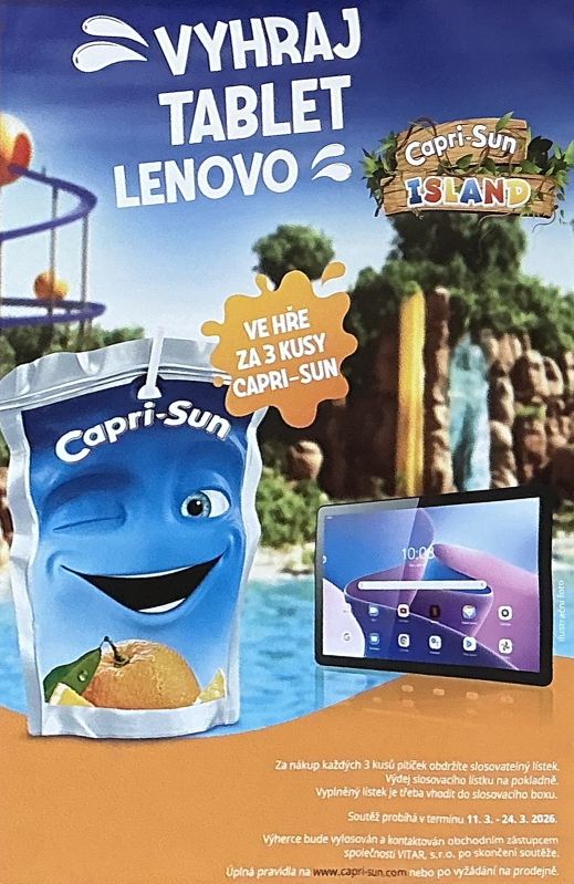 - za nákup 3 Ks pitíček Capri-Sun v letákové nabídce č.6, obdržel kupující jeden slosovatelný lístek na pokladně, který následně vhodil do slosovacího boxu.